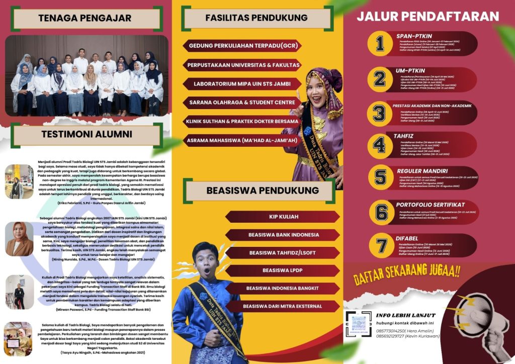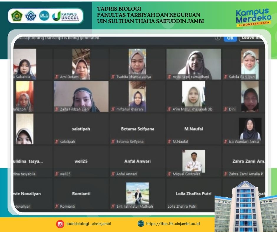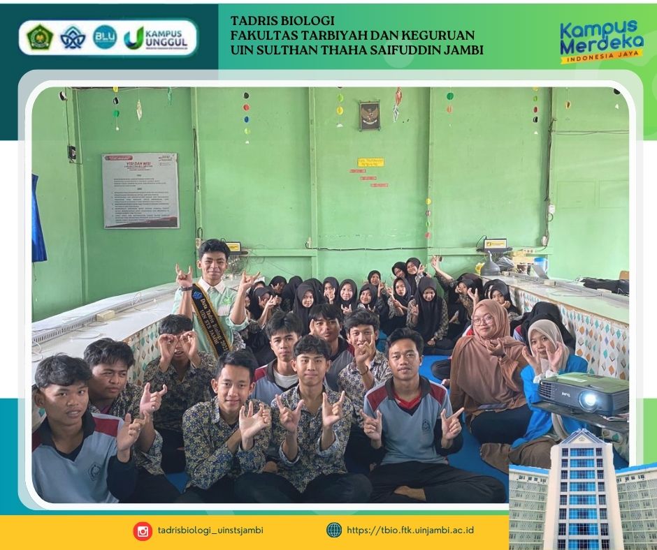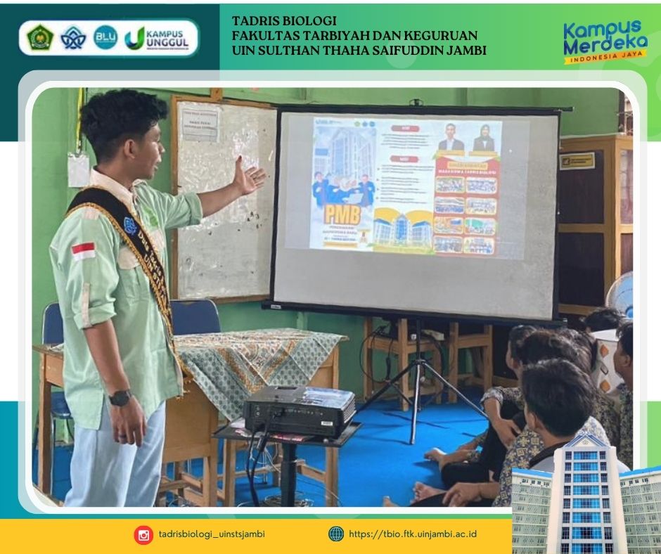 Dalam kegiatan tersebut, Duta Biologi terpilih, Auliya Rahim, hadir secara mandiri untuk menyampaikan berbagai informasi mengenai Program Studi Tadris Biologi di UIN Sulthan Thaha Saifuddin Jambi. Materi yang disampaikan meliputi profil program studi, kegiatan perkuliahan, peluang pengembangan diri mahasiswa, hingga prospek karier lulusan Tadris Biologi di masa depan.