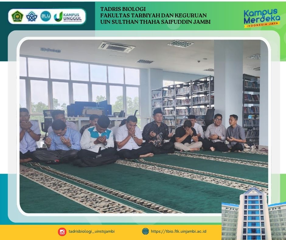 Selasa, 30 September 2025 | Jambi – Fakultas Tarbiyah dan Keguruan (FTK) UIN Sulthan Thaha Saifuddin Jambi kembali menggelar kegiatan rutin bulanan Istighosah pada pukul 14.00 WIB, bertempat di lantai 6 gedung fakultas. Kegiatan ini merupakan bentuk ikhtiar spiritual untuk memohon keselamatan dan kelancaran dalam menjalani aktivitas sehari-hari bagi seluruh civitas akademika FTK.