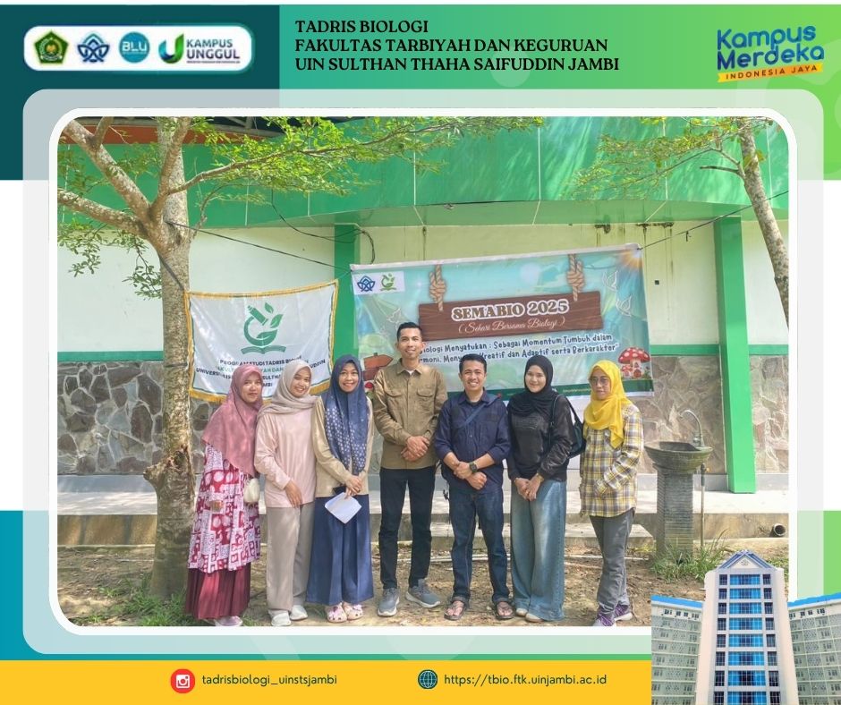 Jambi, 18 Oktober 2025 – Program Studi Tadris Biologi UIN Sulthan Thaha Saifuddin Jambi bekerja sama dengan Himpunan Mahasiswa Program Studi (HMPS) Tadris Biologi sukses melaksanakan kegiatan tahunan bertajuk SEMABIO (Sehari Bersama Biologi) 2025 di Hutan Kota Muhammad Sabki, Kota Jambi.